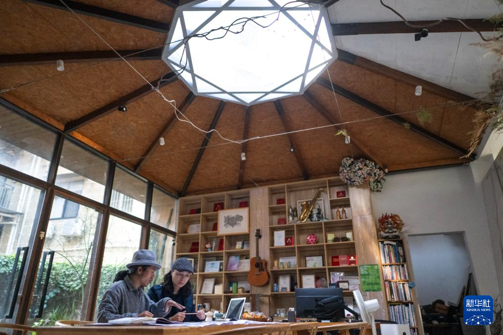 12月13日,在上圍村草圖營造工作室,主理人黃彬凌(左)和袁振宇(右)在修剪花園植物。新華社記者 梁旭 攝pagebreak