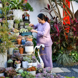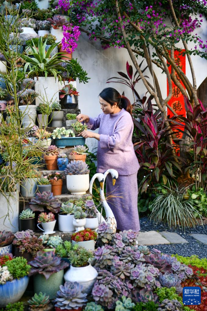 12月13日,在上圍村花鏡園工作室,主理人萬慰在打理多肉植物。新華社記者 梁旭 攝pagebreak