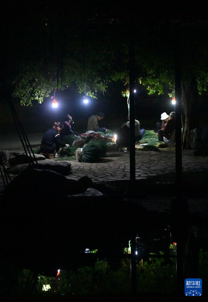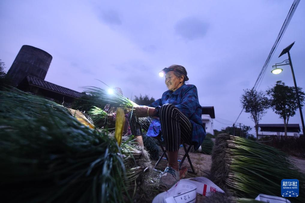 清晨,婦女們在柳州市柳江區三都鎮覺山村挑選香蔥(11月2日攝)。