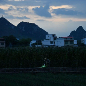 清晨,婦女們在柳州市柳江區三都鎮覺山村挑選香蔥(10月27日攝)。