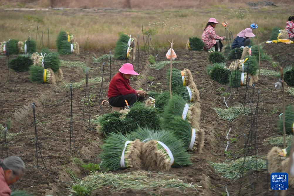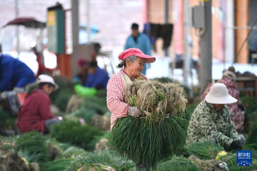 婦女們在柳州市柳江區三都鎮覺山村挑選香蔥(11月3日攝)。