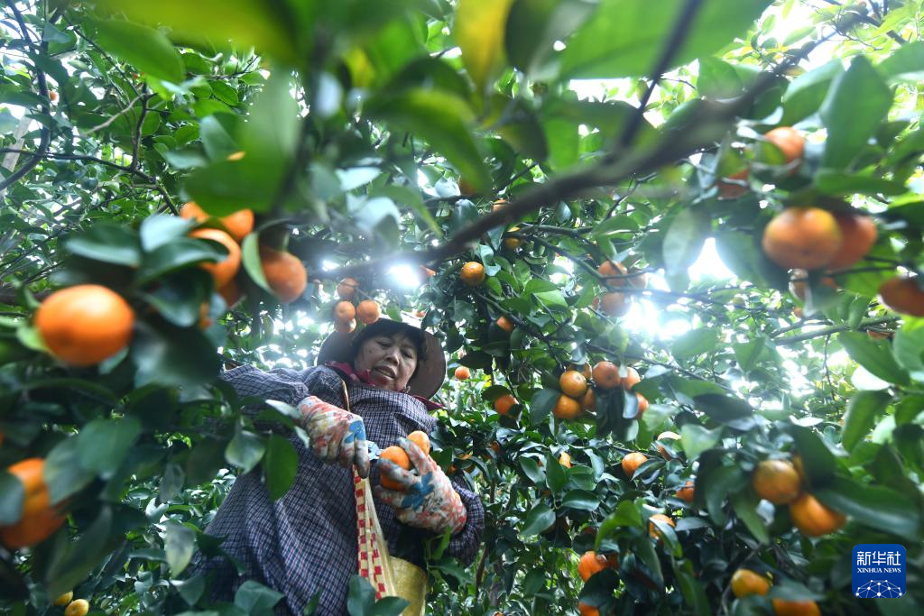 一名婦女在柳州市柳江區土博鎮四案村采收砂糖橘(12月18日攝)。