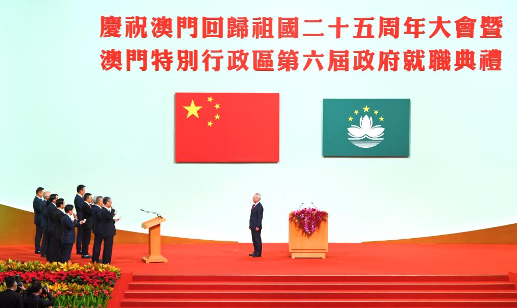12月20日上午,慶祝澳門回歸祖國25周年大會暨澳門特別行政區第六屆政府就職典禮在澳門東亞運動會體育館隆重舉行。