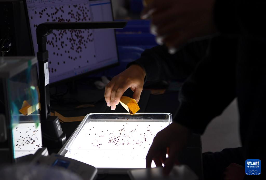 12月25日,在位于河南新鄉的中原農谷實驗室,中國農科院中原研究中心科研人員在考種儀上分析高粱種子。