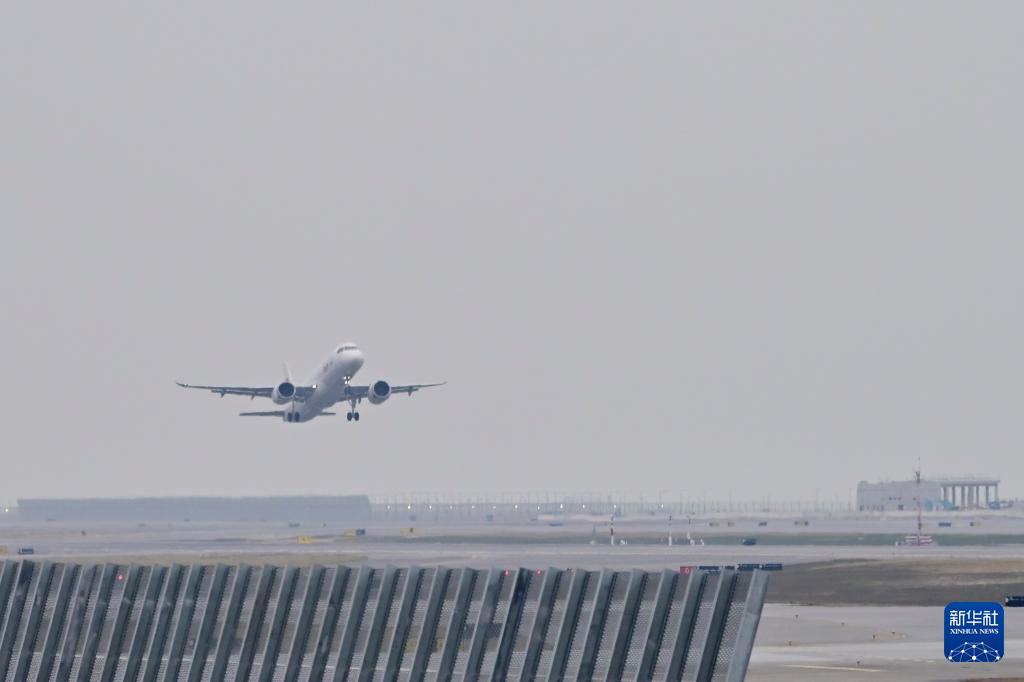 2025年1月1日,東航C919客機從香港國際機場起飛。