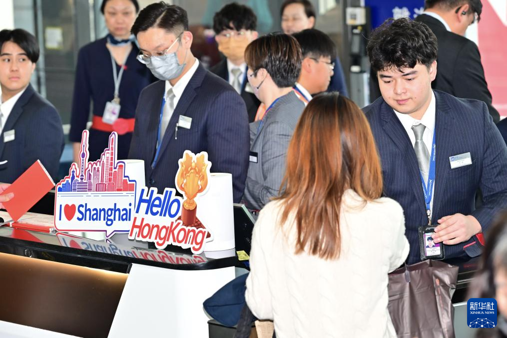 2025年1月1日,搭乘東航C919“香港—上海虹橋”MU722航班的旅客準備登機。