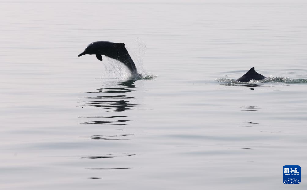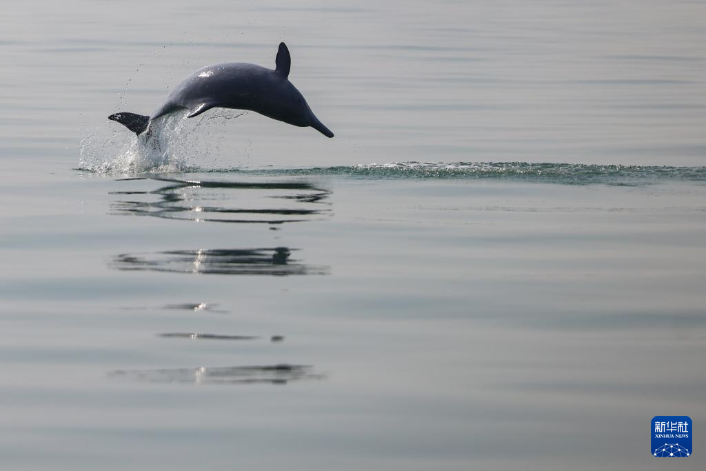 這是1月6日在三娘灣附近海域拍攝的躍出海面的中華白海豚。