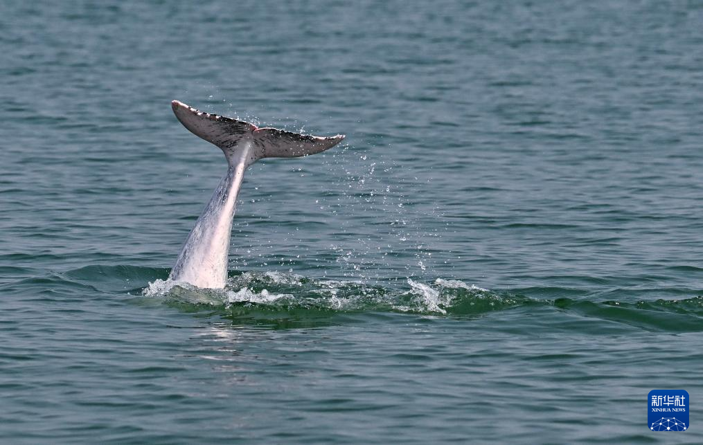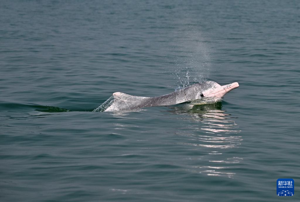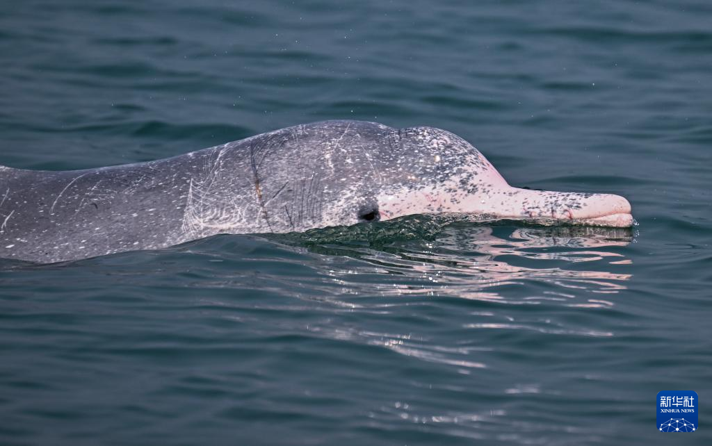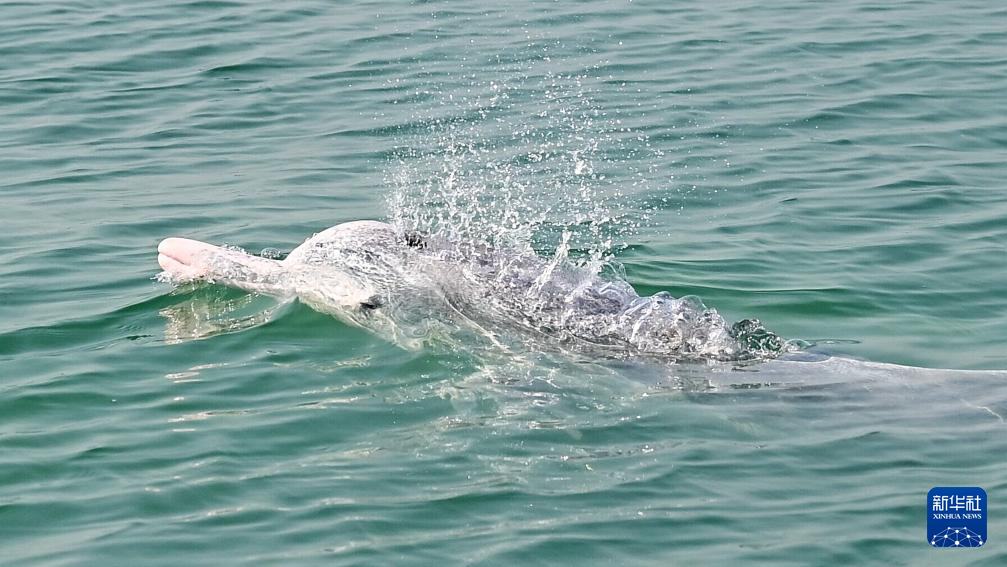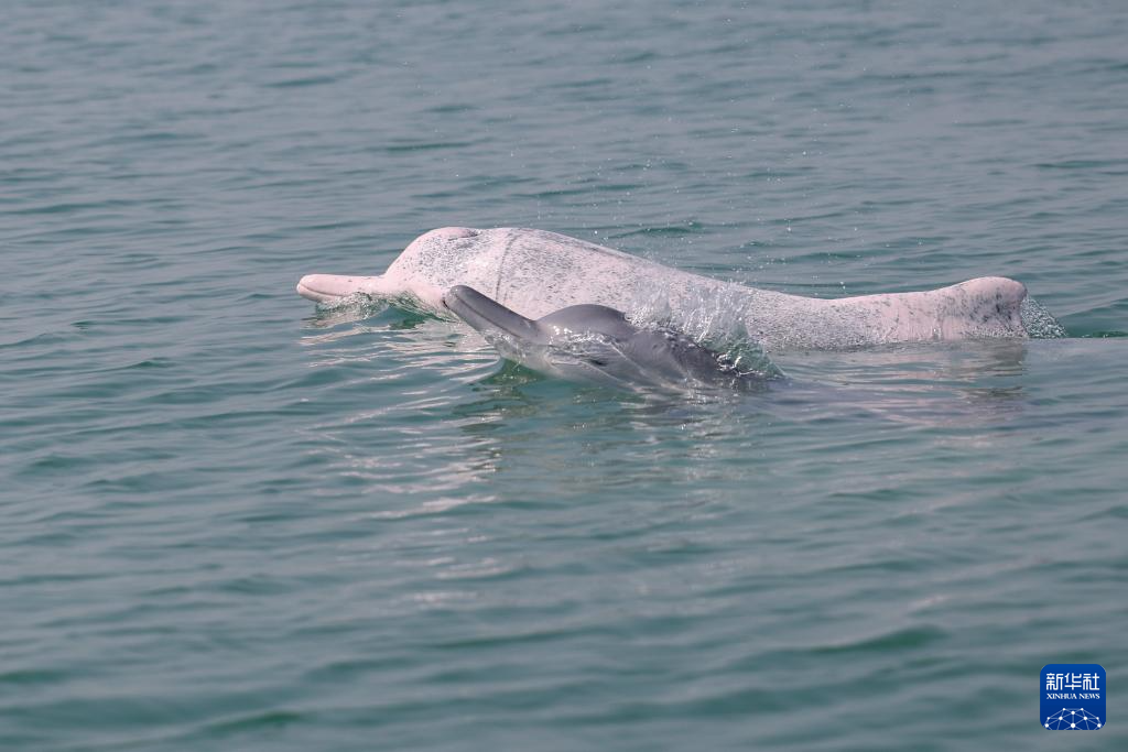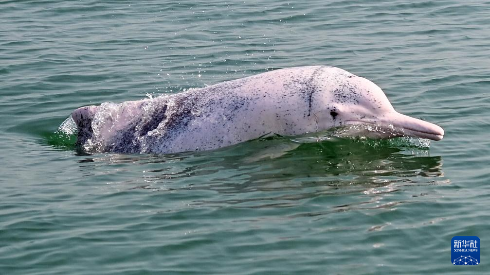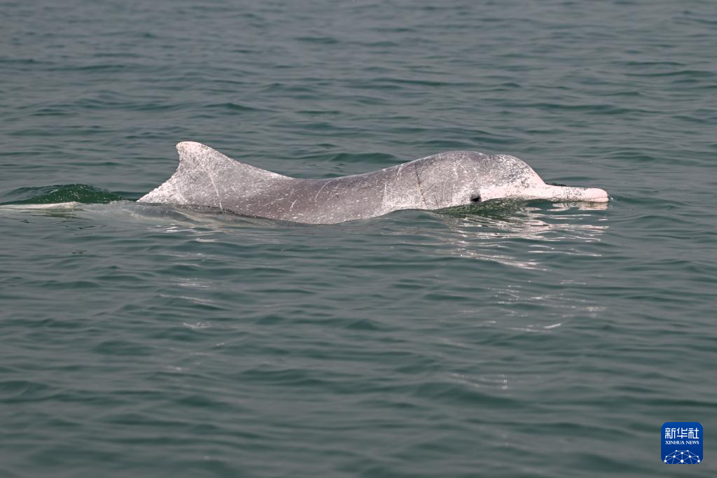 這是1月6日在三娘灣附近海域拍攝的中華白海豚。中華白海豚幼年呈暗灰色,青壯年個體灰色和粉紅色相雜,成熟期后逐漸變成白色。