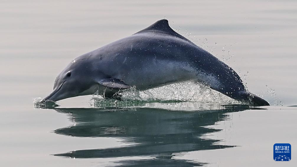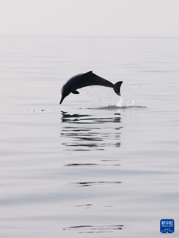 這是1月6日在三娘灣附近海域拍攝的躍出海面的中華白海豚幼仔。