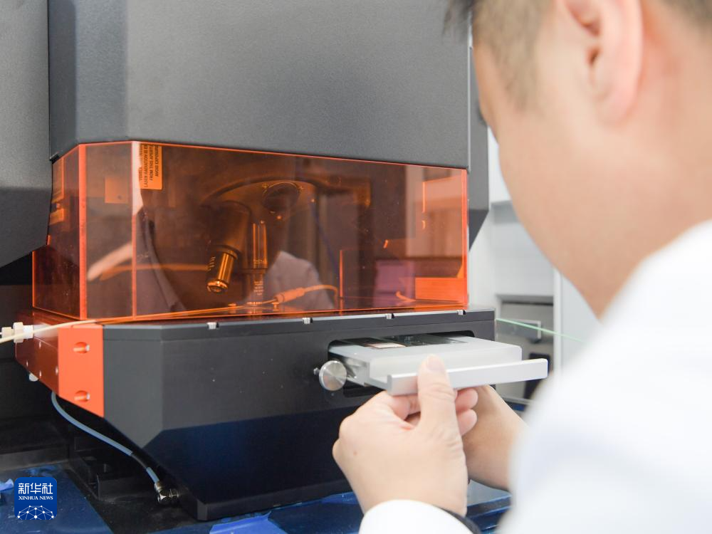 在成都理工大學油氣藏地質及開發工程全國重點實驗室,鄒灝將需要分析測試的樣品放入飛秒激光剝蝕電感耦合等離子體質譜儀中(2025年1月12日攝)。