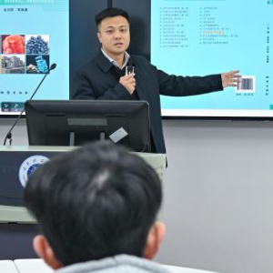 鄒灝在礦床實驗室給學生講授典型礦床案例(2024年11月27日攝)。