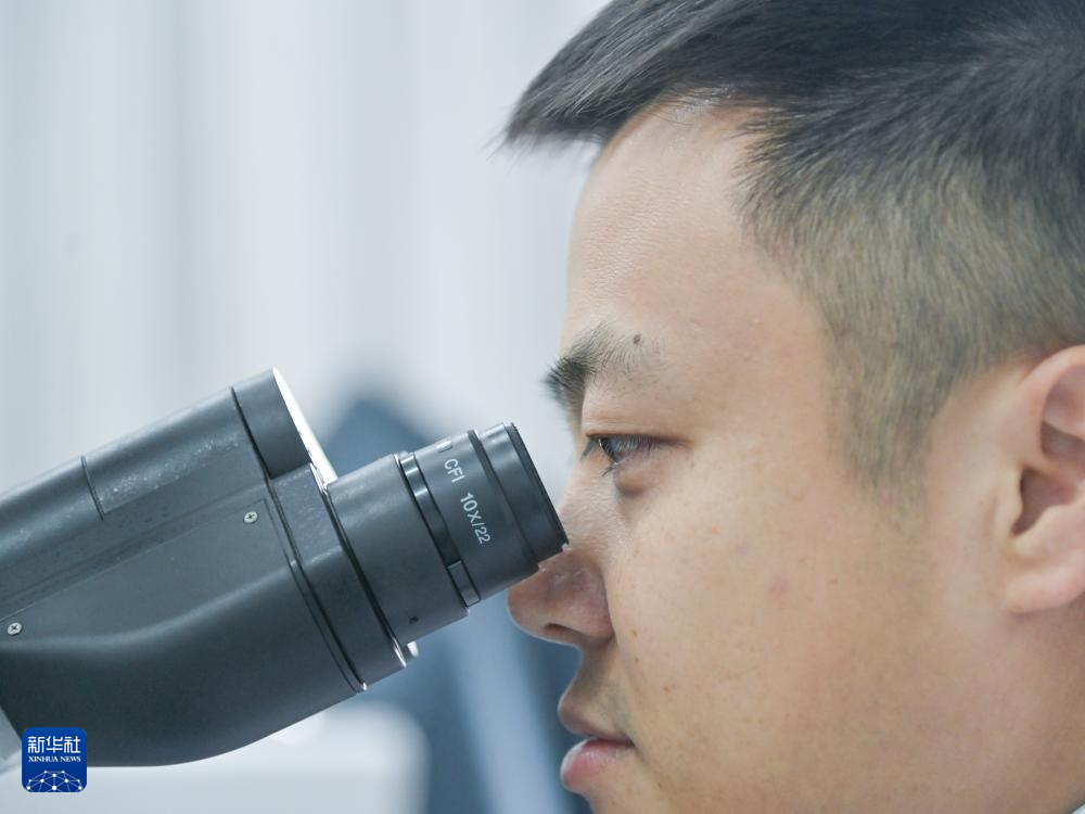 在成都理工大學地球與行星科學學院實驗室,鄒灝在開展巖石的鏡下鑒定工作(2024年11月27日攝)。