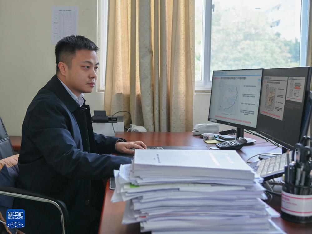 在成都理工大學研究生院,鄒灝在辦公室修改授課課件(2024年11月27日攝)。