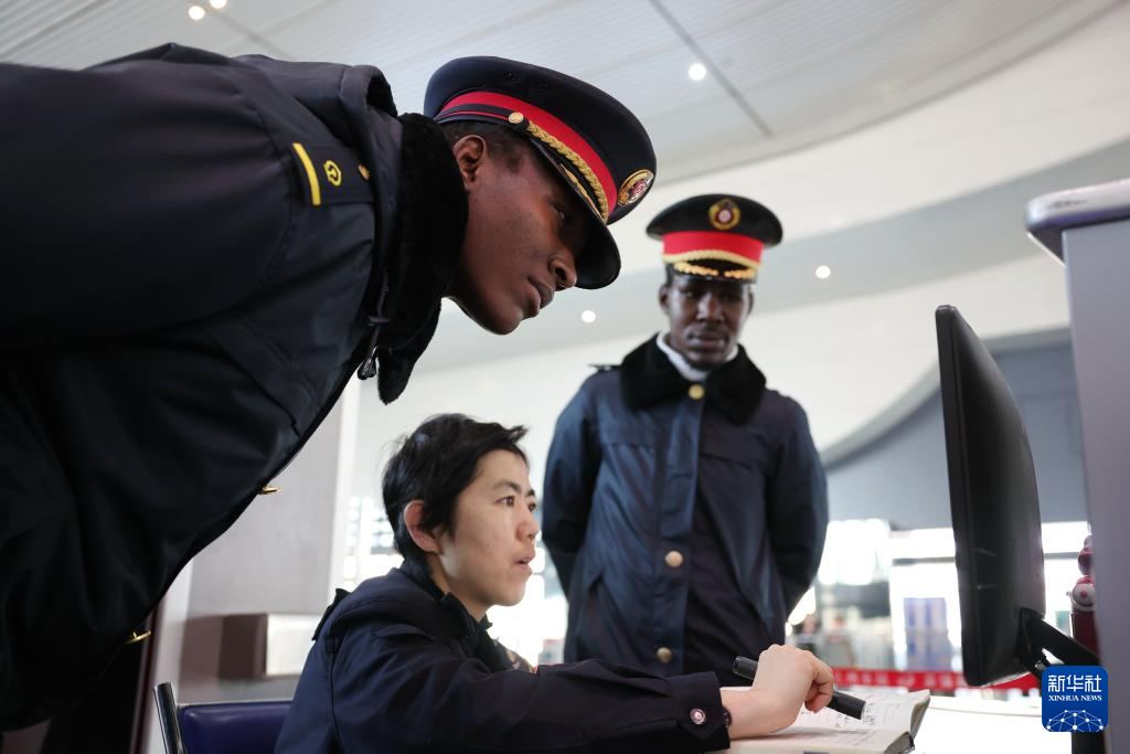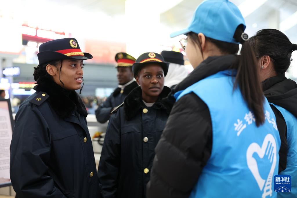 春運期間,一群身著鐵路制服的“老外”現身蘭州西站,他們幫助旅客搬運行李、協助安檢、引導進站和提供問詢服務。這支“老外”志愿者服務隊成員共10人,來自肯尼亞、乍得、老撾、阿富汗、馬達加斯加等多個國家,目前都在蘭州大學學習深造。在鐵路部門的邀請下,他們穿上鐵路制服走進車站,沉浸式感受春運的獨特氛圍和“流動的中國”。