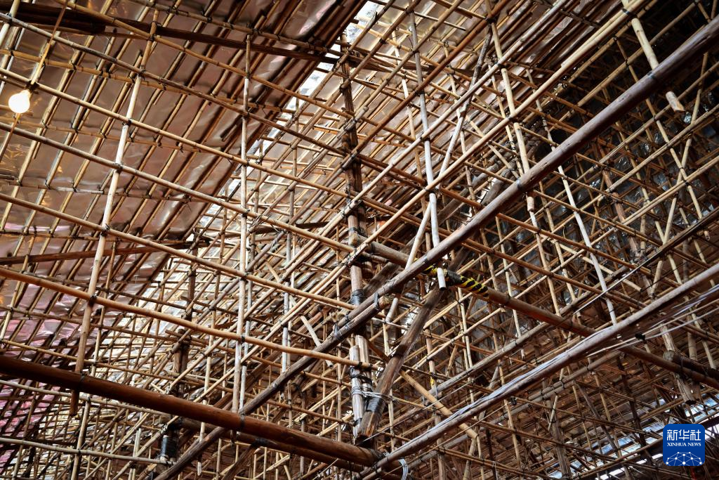 這是2024年11月11日拍攝的香港元朗廈村鄉太平清醮活動戲棚的局部。