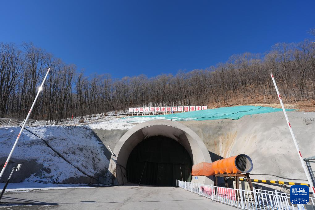 1月25日拍攝的濱綏鐵路綏芬河至國境線擴能改造工程隧道口。