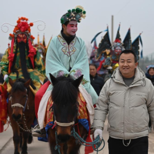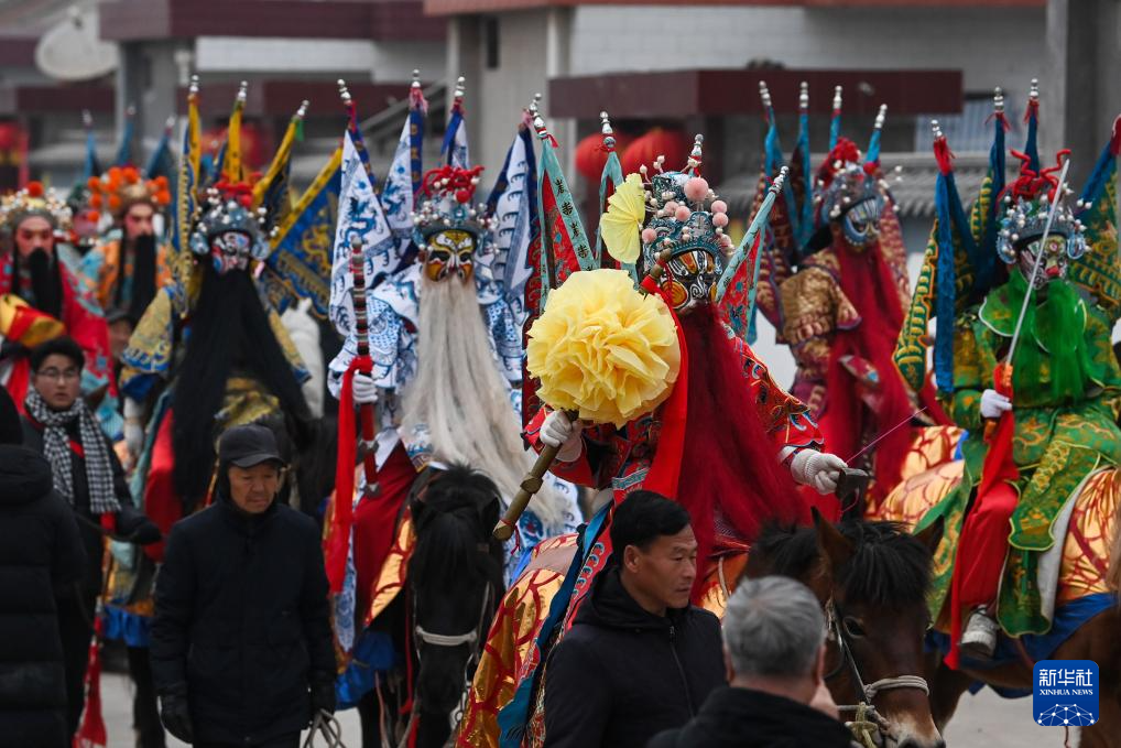 隴縣東南鎮黃花峪村是著名的“馬社火村”,每年春節期間,村民都會表演馬社火,挨家挨戶送上新春祝福。為了在清晨出發,社火隊通常在凌晨三四點就開始準備,演員、化妝師、鑼鼓隊和后勤保障人員從黑夜忙到天明,共同呈現黃土地上的新春文化盛宴。