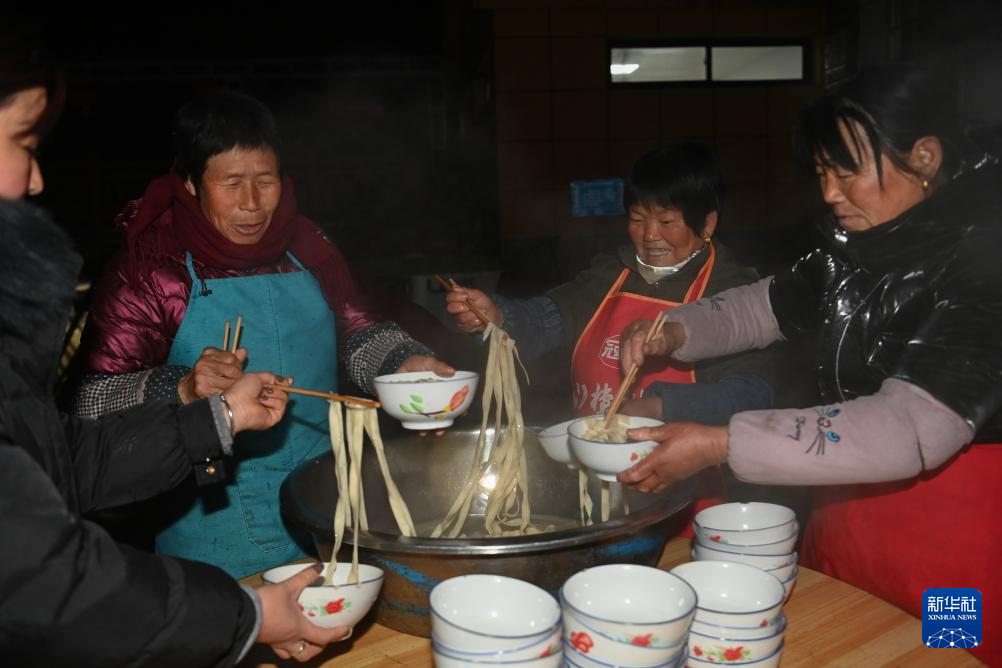 2月11日凌晨,黃花峪村的村民為社火隊成員準備早餐。