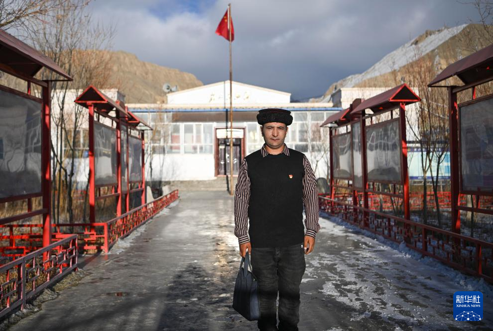 這是在新疆喀什地區塔什庫爾干塔吉克自治縣瓦恰鄉夏布孜喀拉村拍攝的全國人大代表多來提曼·開米克(2025年1月3日攝)。