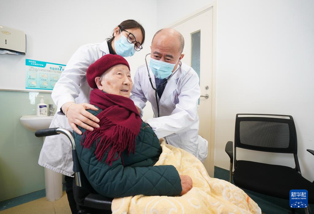 吳德沛在蘇州蘇康養老年病醫院給老人義診(2025年2月17日攝)。