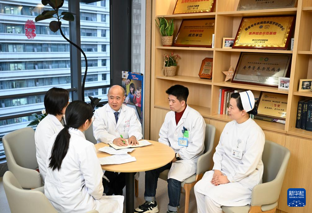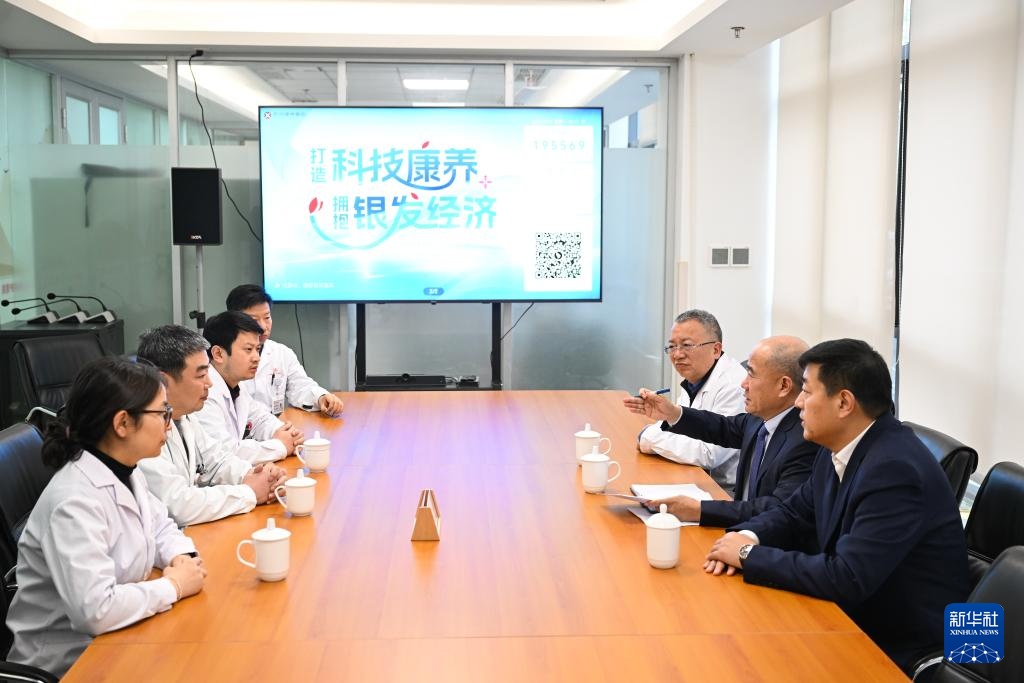 在蘇州蘇康養老年病醫院,吳德沛和管理人員、醫務人員交流,征集他們的建議(2025年2月17日攝)。