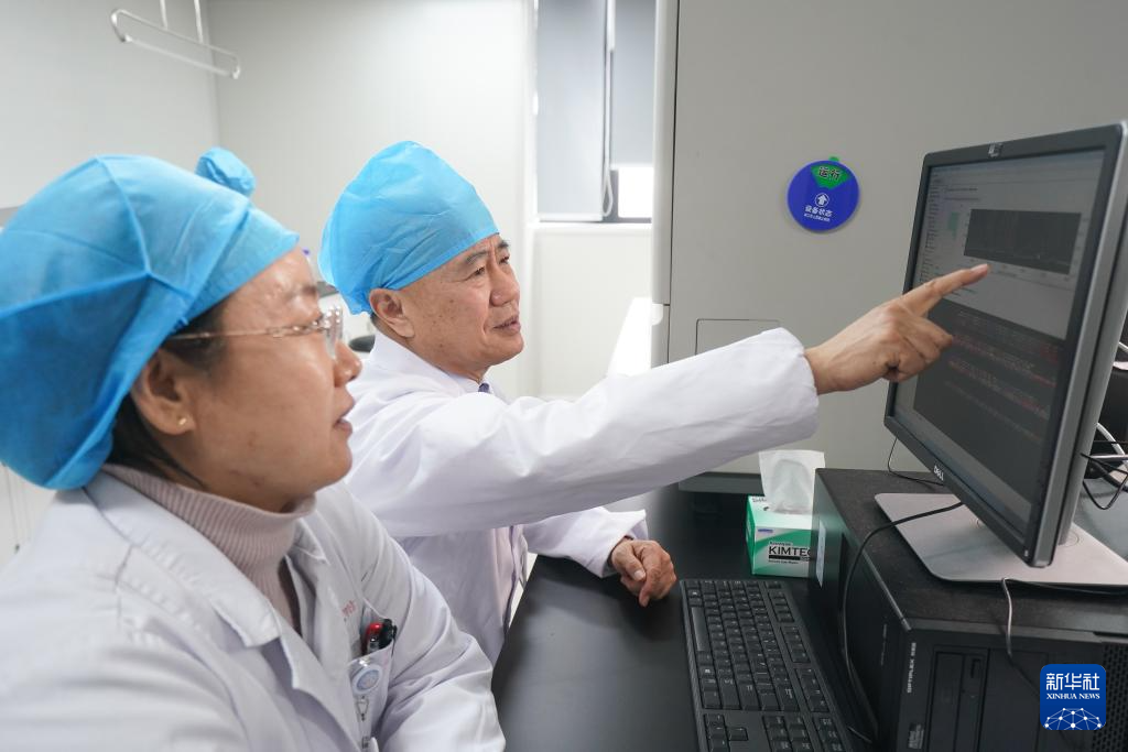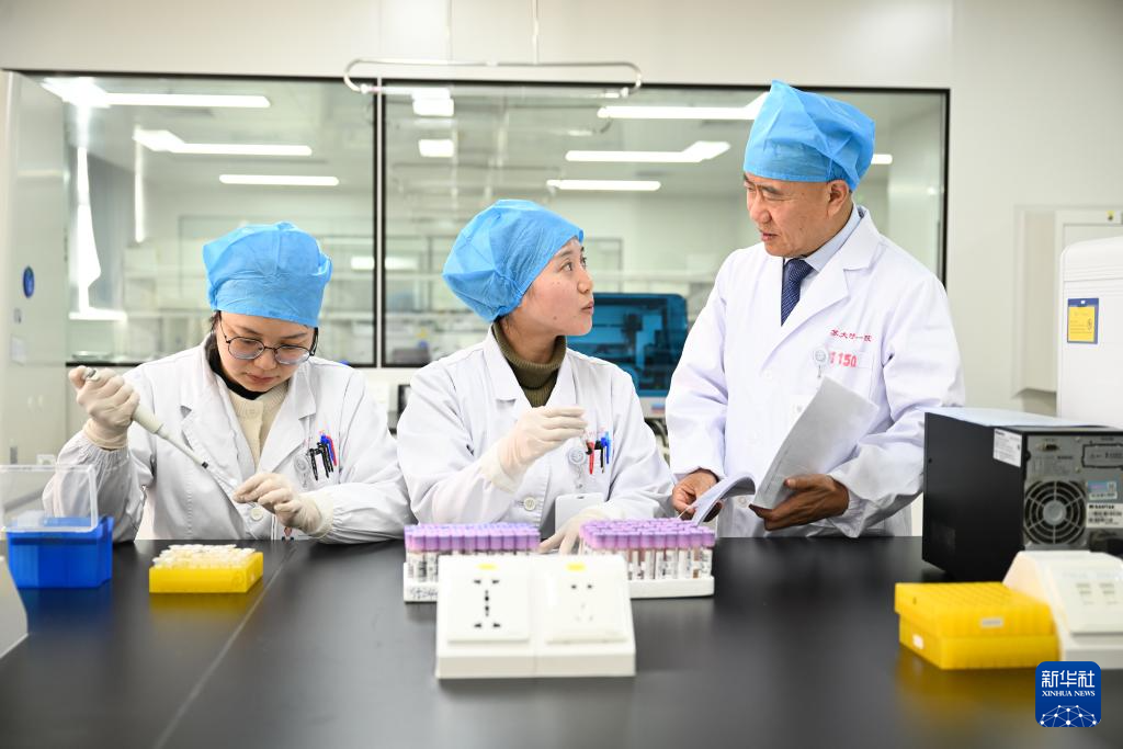 在位于蘇州大學附屬第一醫院的國家血液系統疾病臨床醫學研究中心HLA配型實驗室,吳德沛和研究人員一起分析供受者HLA配型結果(2025年2月17日攝)。