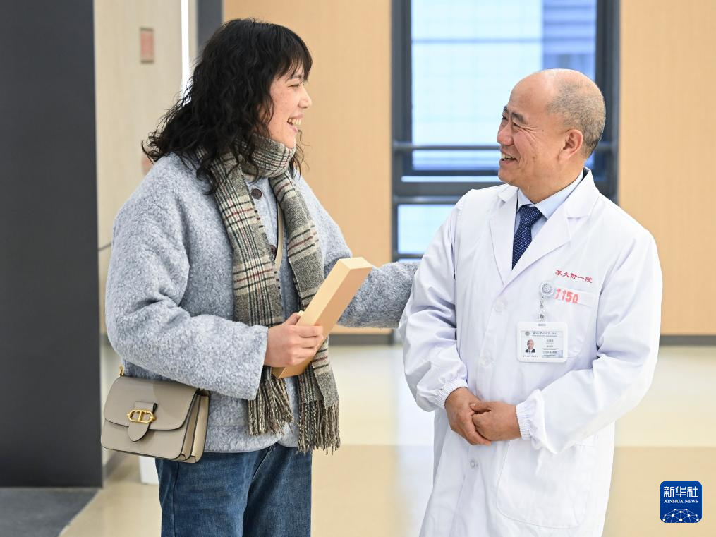 24年前獲得救治的患者來到醫院看望吳德沛(2025年2月17日攝)。