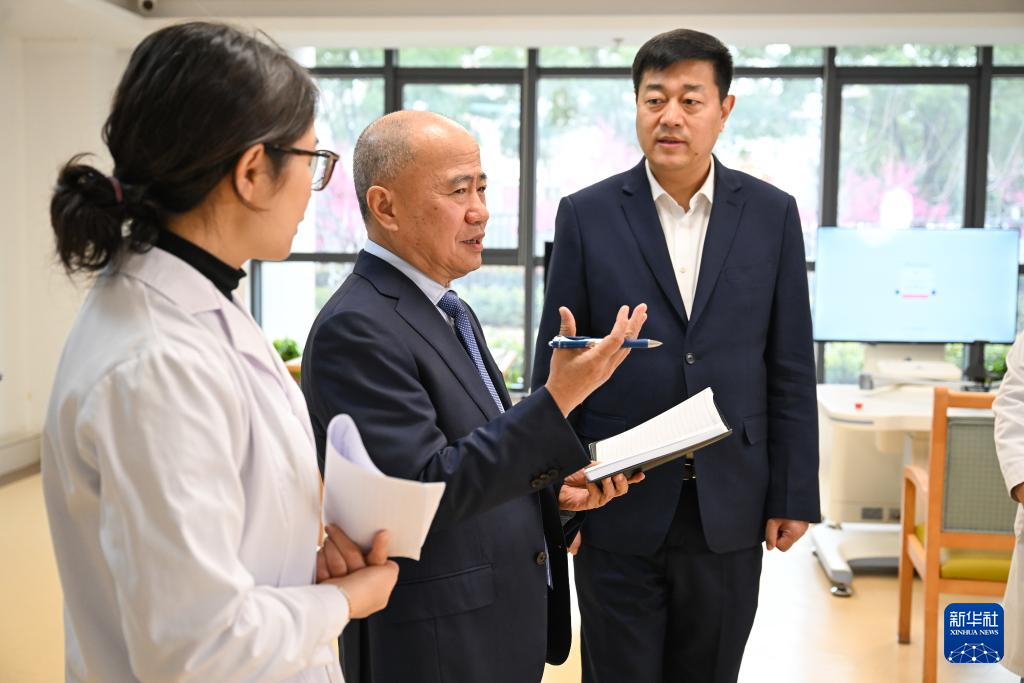 吳德沛和蘇州大學附屬第一醫院老年醫學科的醫務人員交談,征集他們的建議(2025年2月17日攝)。