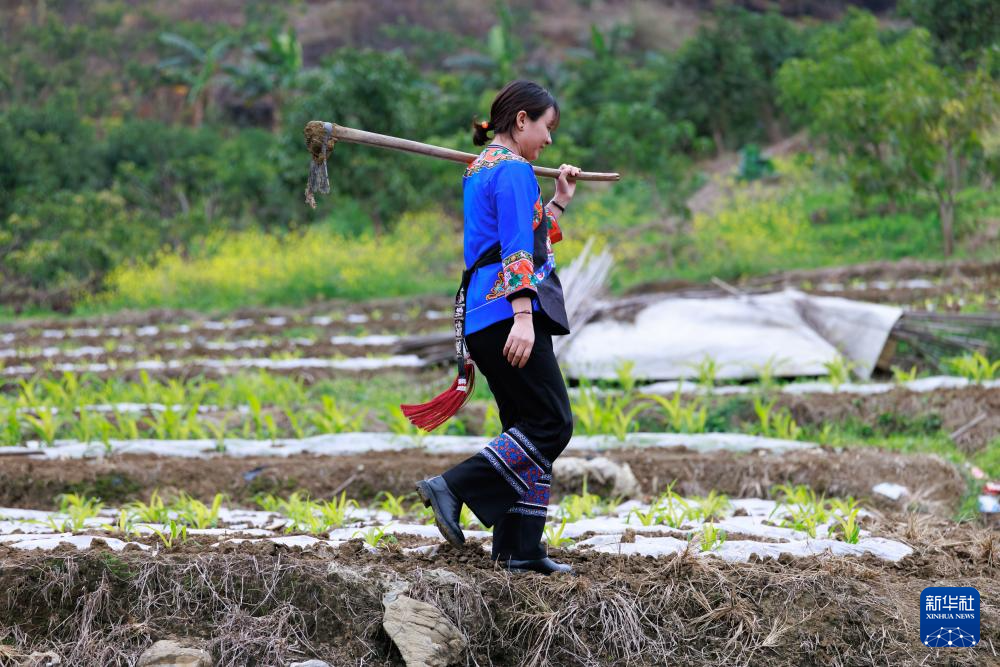 盧丹在鎮寧布依族苗族自治縣六馬鎮致富村查看農作物生長情況(2025年2月20日攝)。