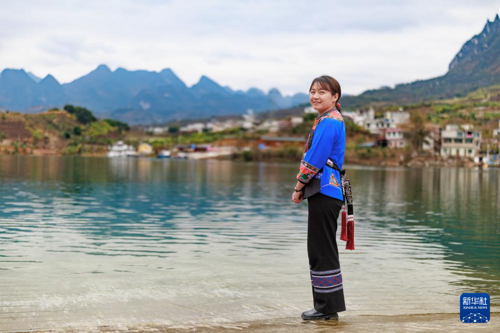 盧丹在鎮寧布依族苗族自治縣六馬鎮致富村的碼頭邊留影(2025年2月20日攝)。
