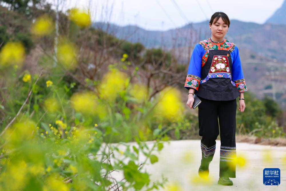 在鎮寧布依族苗族自治縣六馬鎮致富村,盧丹準備到村民家中入戶走訪(2025年2月20日攝)。