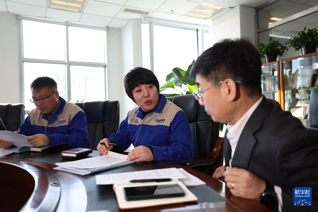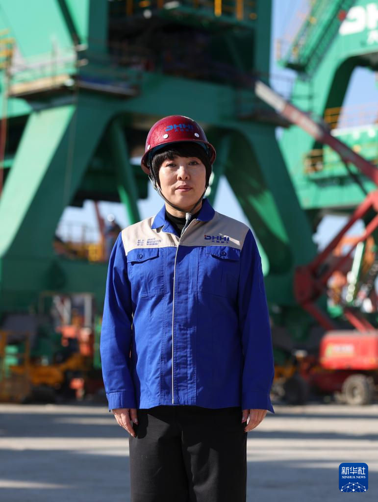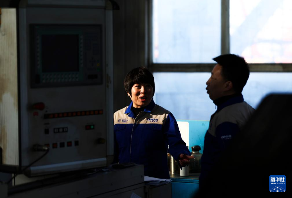 這是在大連華銳重工集團股份有限公司港口機械制造事業部施工現場拍攝的全國人大代表孫元華(2025年2月20日攝)。