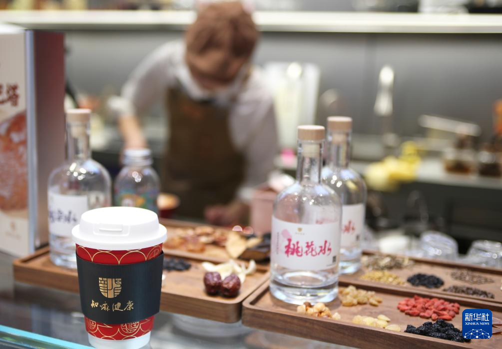 這是2月25日在同仁堂知嘛健康北京正大店內拍攝的中草藥草本飲品?!爸锝】怠笔峭侍眠@兩年著力打造的新零售品牌,融合了時代創新的元素,展現出了“健康新玩法,科技驅動世界”的理念。