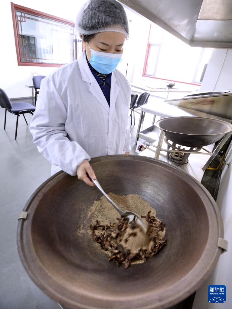 2月23日,同仁堂國家級非物質文化遺產生產性保護示范基地項目成員、中藥炮制技藝首席技師呂建媛在展示傳統中藥材炒制技藝。