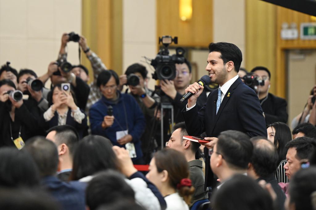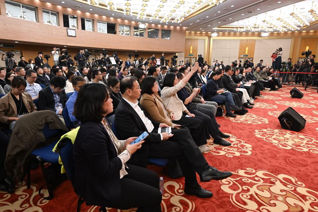 3月9日,十四屆全國人大三次會議在北京梅地亞中心新聞發布廳舉行記者會。民政部部長陸治原、人力資源和社會保障部部長王曉萍、住房和城鄉建設部部長倪虹、國家衛生健康委員會主任雷海潮就民政、就業和社會保障、住房、衛生健康等相關問題回答中外記者提問。這是記者在提問。