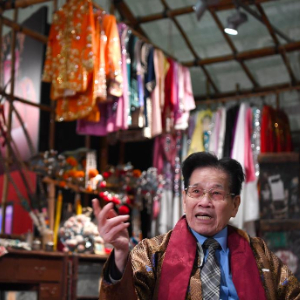 1月14日,香港粵劇帽飾老行尊陳國源在香港文化博物館粵劇館接受記者采訪。