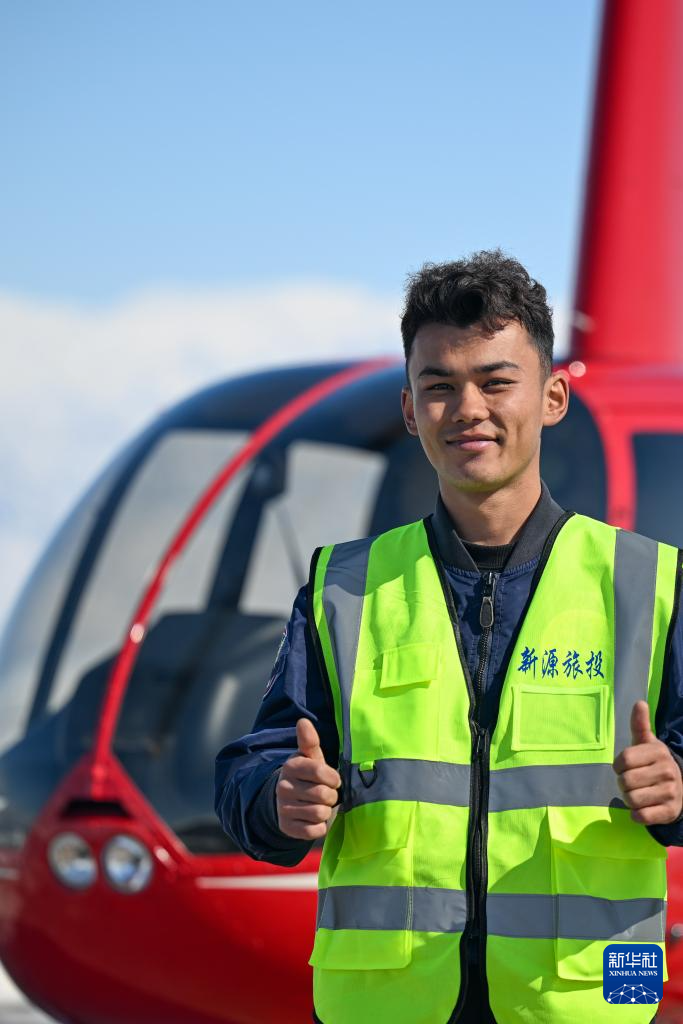 在駕駛艙內,米爾別克·特留別克不僅是技術精湛的飛行員,更是魅力新疆的熱忱推介者。他向游客介紹新疆的壯麗山河,分享各民族和諧共處的溫馨故事,也大方講述自己成長為直升機駕駛員的歷程。這讓游客收獲非凡體驗的同時,他自己也能感到充實與幸福。