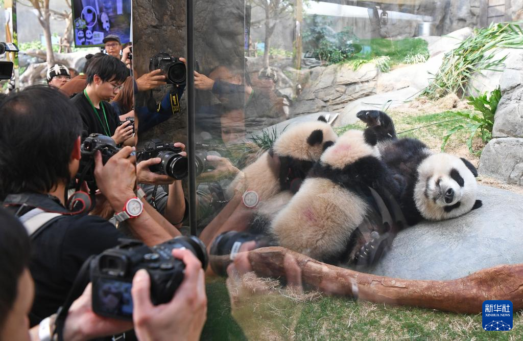 “港產”大熊貓龍鳳胎寶寶及它們的媽媽“盈盈”將于3月22日在香港海洋公園與公眾見面。這是這對大熊貓寶寶首度與媽媽同框亮相。
