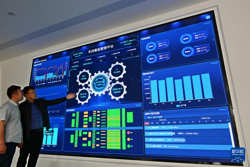 在即墨區龍山街道一家服裝企業的車間看板管理平臺,工作人員在實時查看相關數據(3月25日攝)。