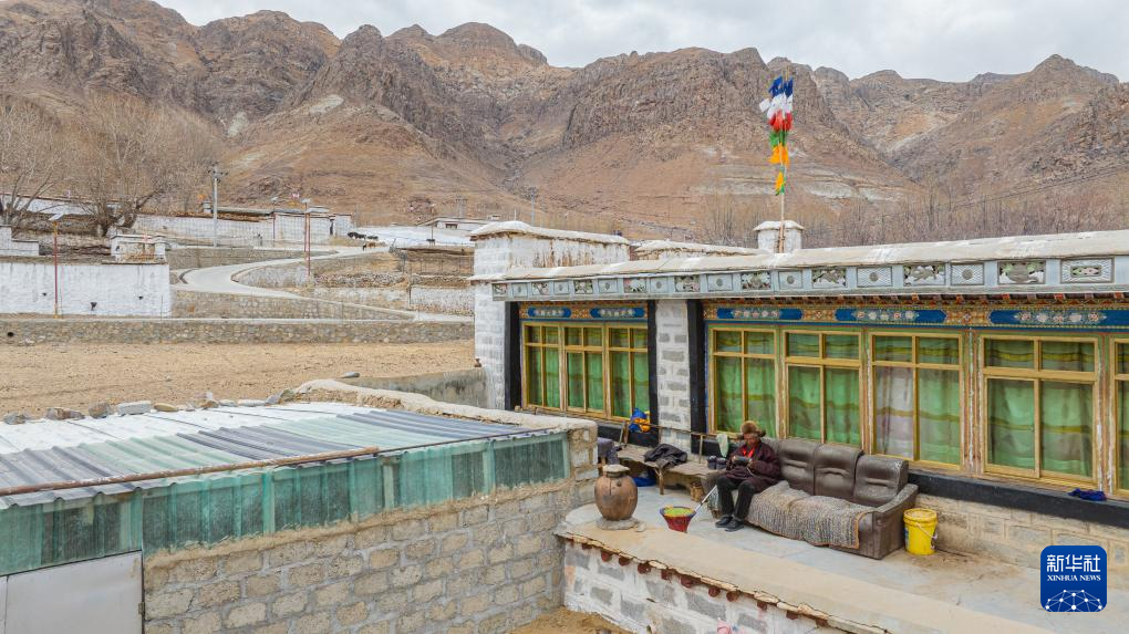 索扎老人在自家院子里聽收音機(3月20日攝,無人機照片)。