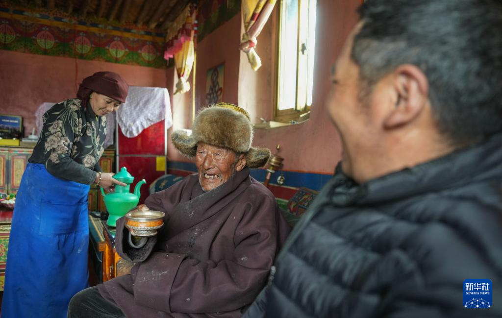 從1959年到1998年,老人先后擔任村黨支部書記及鄉長,騎著馬走遍十里八鄉宣傳黨的大政方針、惠民政策。1974年,老人隨著西藏自治區農業參觀團到祖國內地參觀學習。與參觀團成員在天安門的一張合影,一直被他時不時拿出來“顯擺”?!艾F在的生活太愜意了!”老人臉上洋溢著笑容,和鄰里鄉親一起喝著啤酒,暢聊這來之不易的新生活,“現在有了美好的生活,吃喝不愁,再也不用像過去那樣做牛做馬,這在以前想都不敢想?!比缃?,老人享受著養老金、醫療保險等惠民政策,兒孫滿堂,日子安穩幸福。