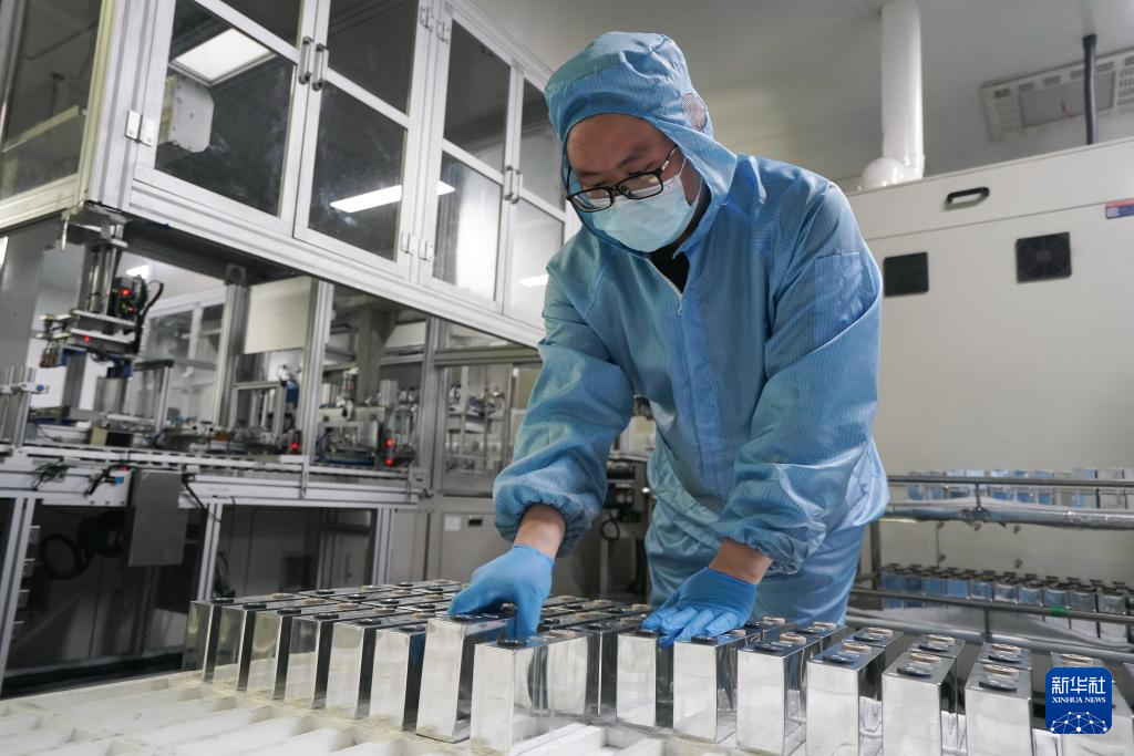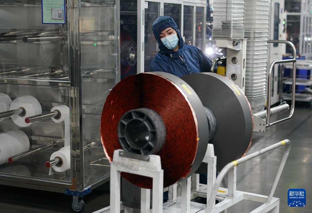 4月5日,工人在雙登集團股份有限公司鋰電池生產車間作業。