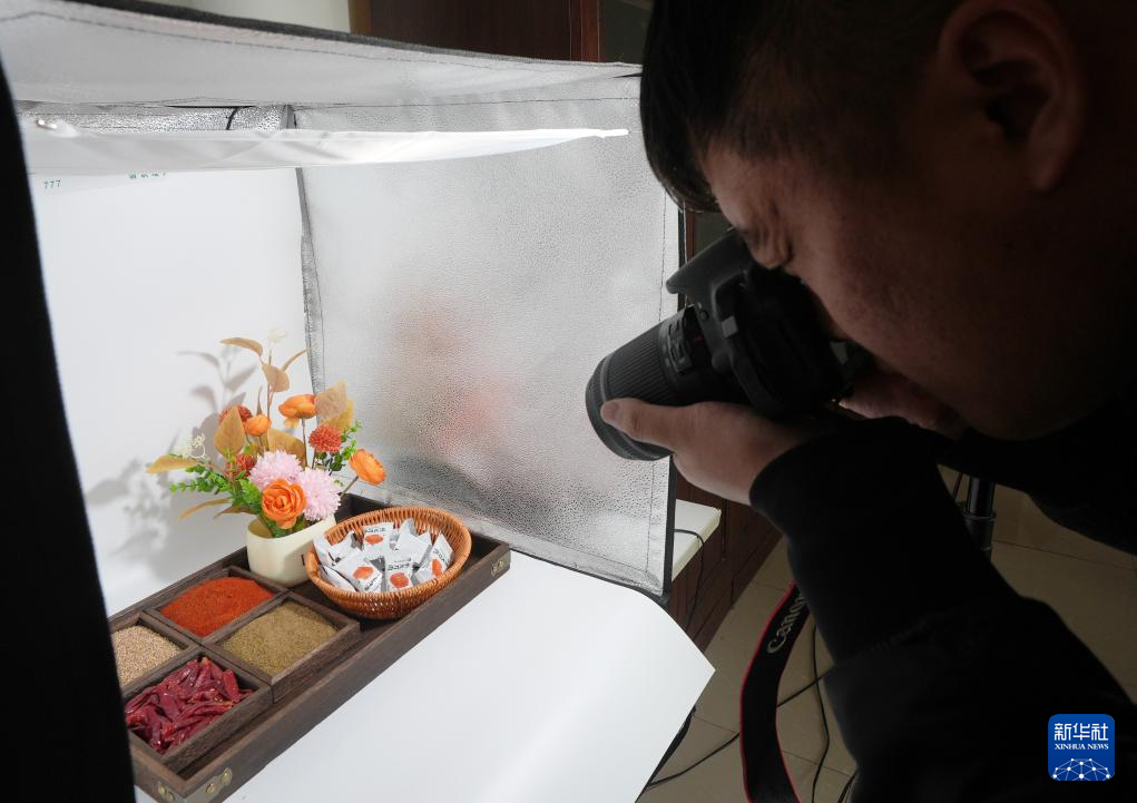 4月11日,工作人員在沈陽市陽陽食品有限公司拍攝產品宣傳材料。