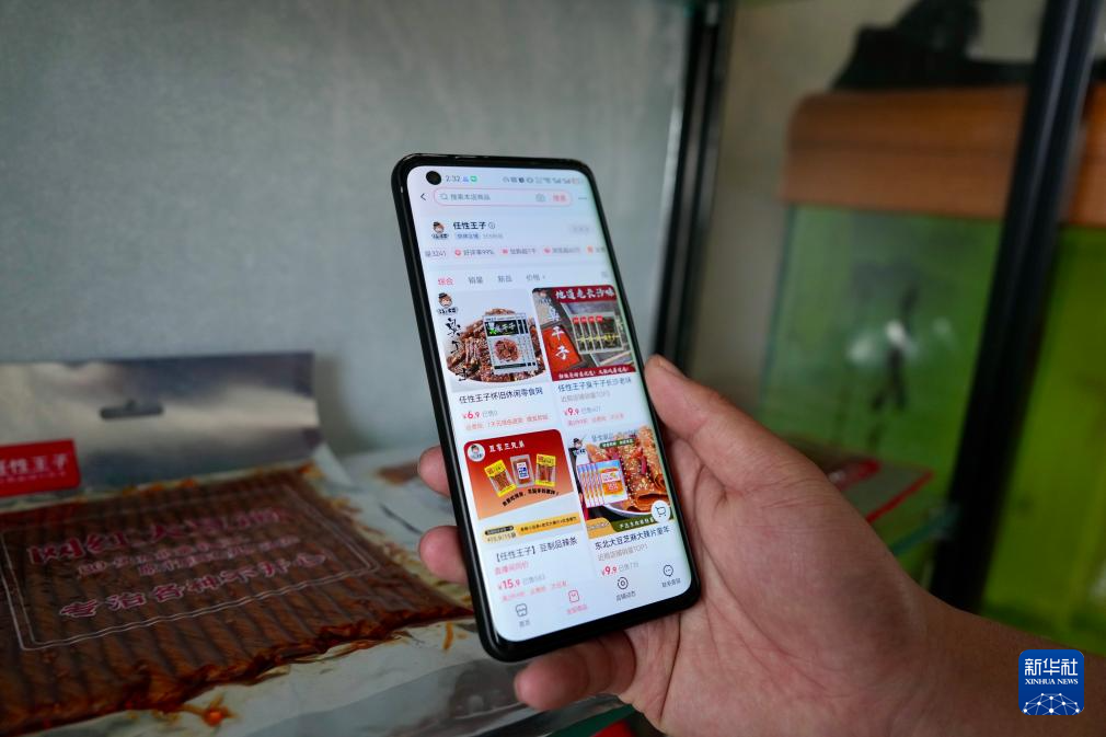 4月8日,在沈陽市陽陽食品有限公司,徐百元展示公司運營的線上店鋪。