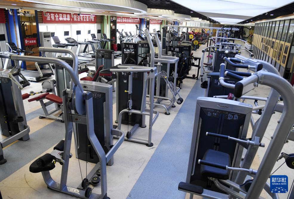 青島英派斯健康科技股份有限公司展廳內展陳的各種健身器械(4月22日攝)。