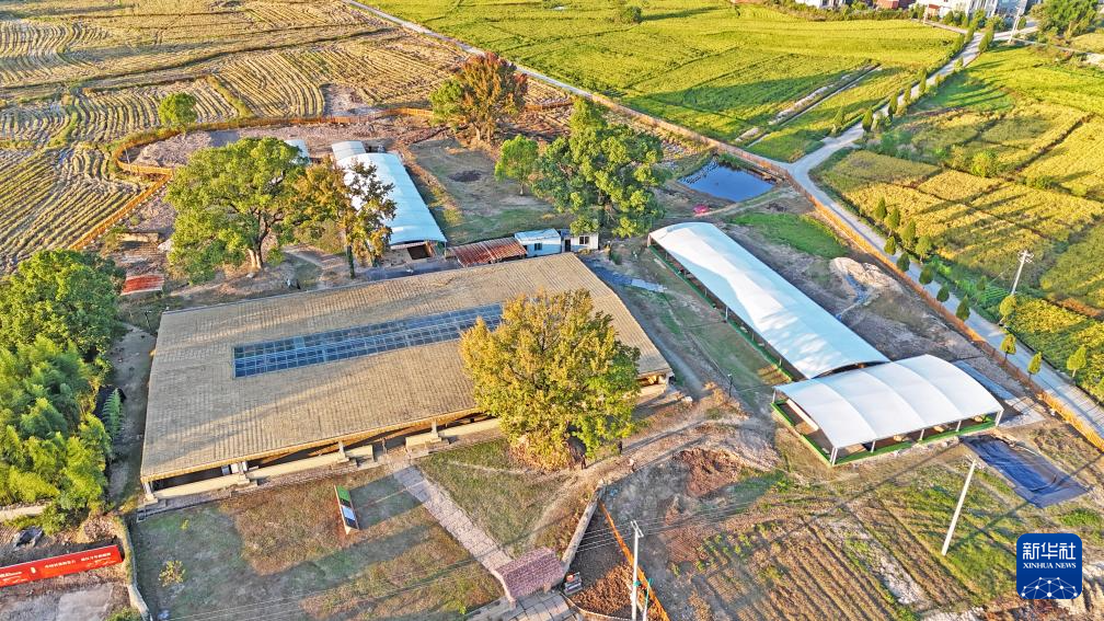 浙江仙居下湯遺址航拍圖,遺址上方已修建了保護棚(資料照片)。