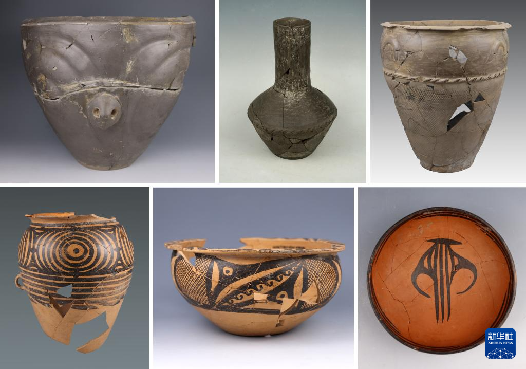 甘肅臨洮寺洼遺址出土的陶器(拼版照片)。