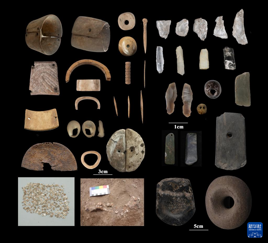 西藏康馬瑪不錯遺址出土的第二期遺物(石質、骨質、金屬裝飾品,骨針、滑石珠、紅玉髓、玻璃珠等)(資料照片)。