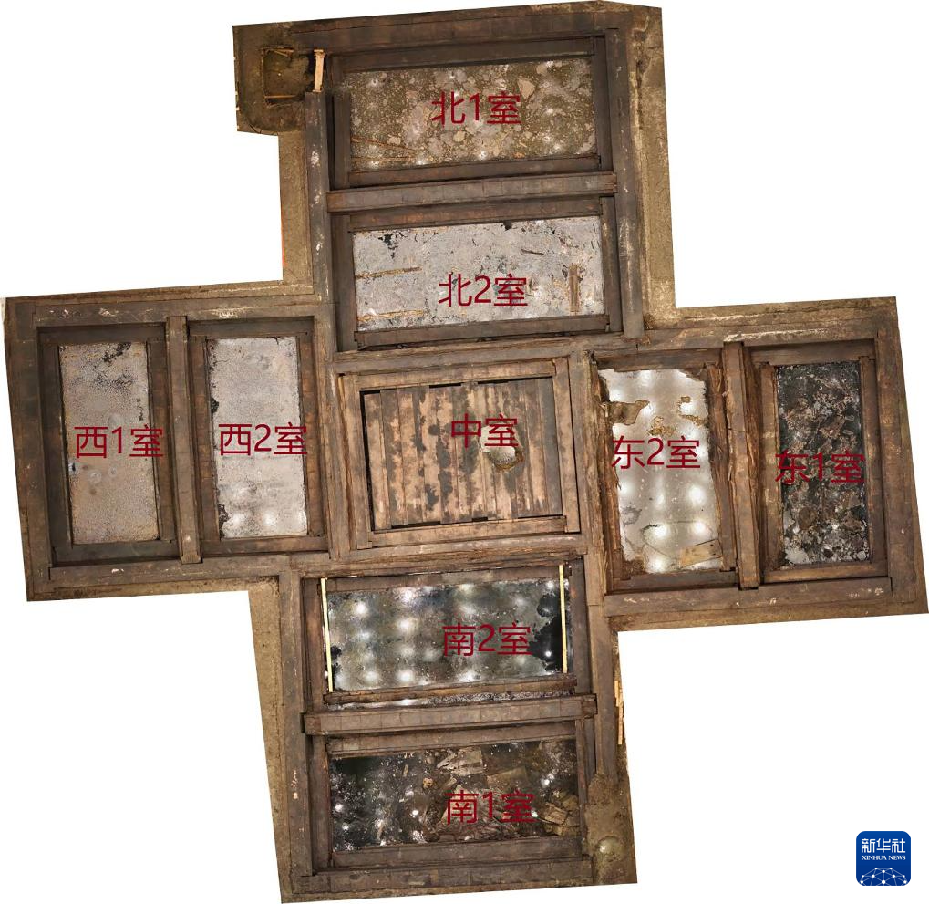 安徽淮南武王墩一號墓木槨室布局(周邊蓋板揭取后)(資料照片)。