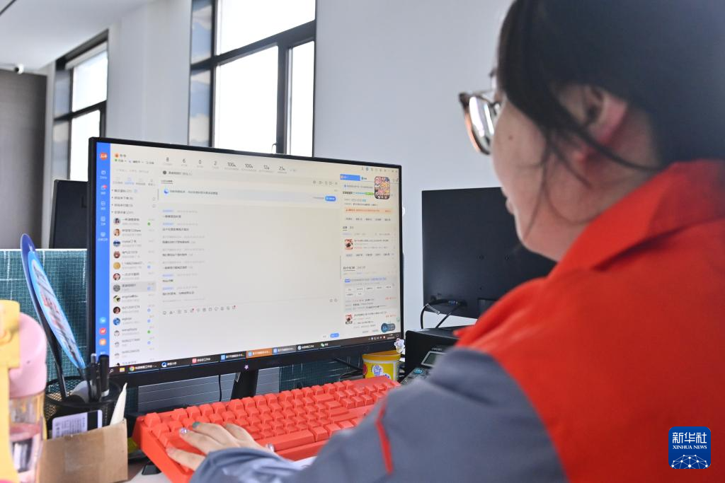 4月24日,在位于遼陽市的遼寧鑫金科技實業集團有限公司電商部內,工作人員在線上和顧客溝通。